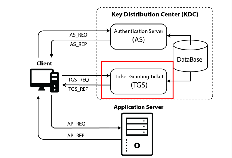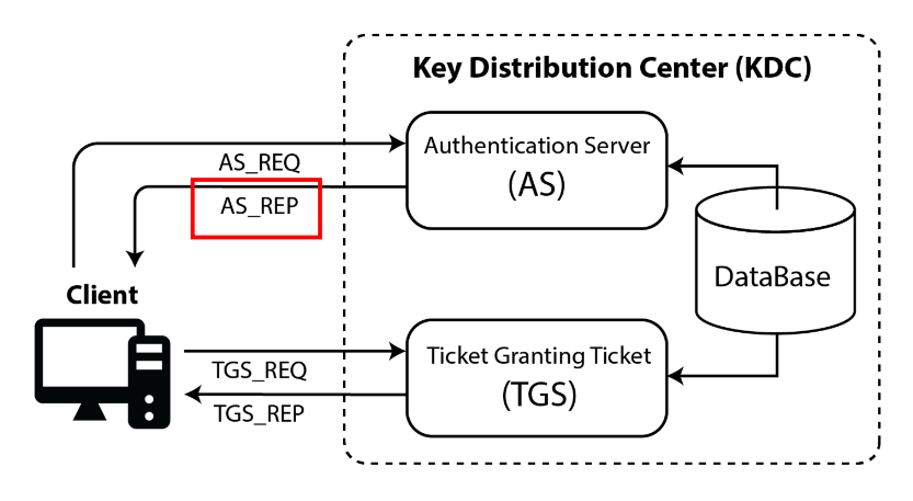 TGTto the AS.After successful validation from the AS by checking its database and doing checks to confirm if the authentication is valid by decrypting the information sent by the client, the AS responds with an AS-REP (Authentication Service Reply) containing a Ticket-Granting Ticket (TGT).