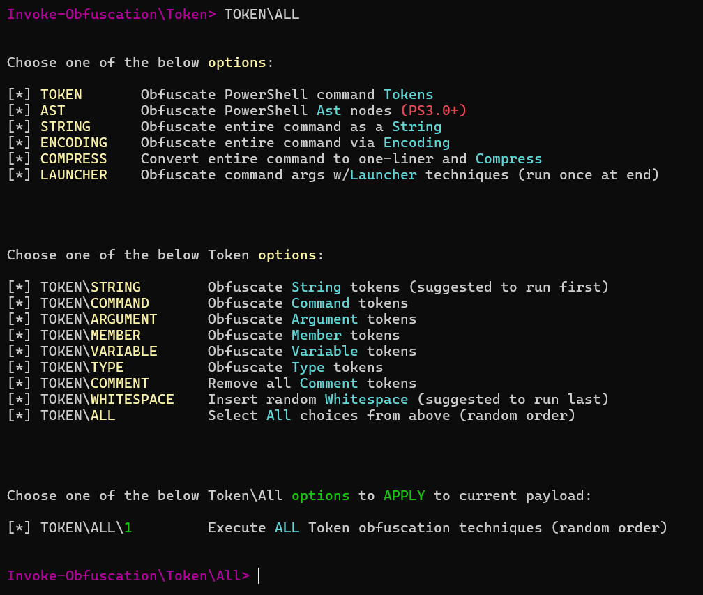 For this example we used TOKEN obfuscation for a better explanation of the tool The Invoke Obfuscation Usage guide